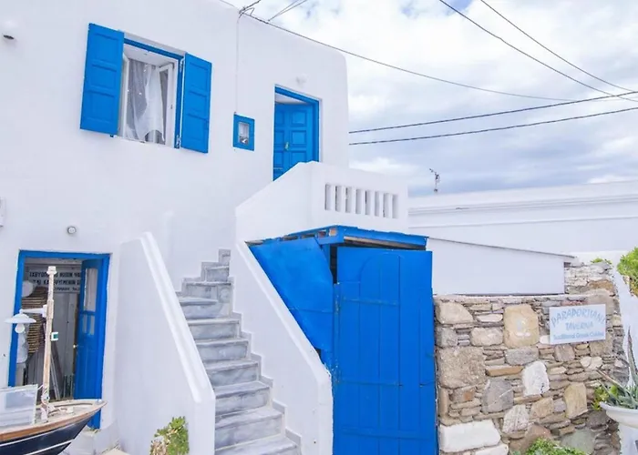 Leuchtturm am Kap Armenistis befindet sich ungefähr 4 Kilometer von der 1-Zimmer-Ferienwohnung Like A White Seagull In Mykonos! Mykonos Town entfernt und ist einen Besuch wert. Das 55 m^2 große Apartment ist außerdem mit einem Bügeleisen/Bügelbrett sowie einer Waschmaschine ausgestattet, um den Komfort der Gäste zu gewährleisten.